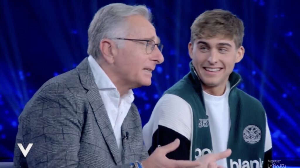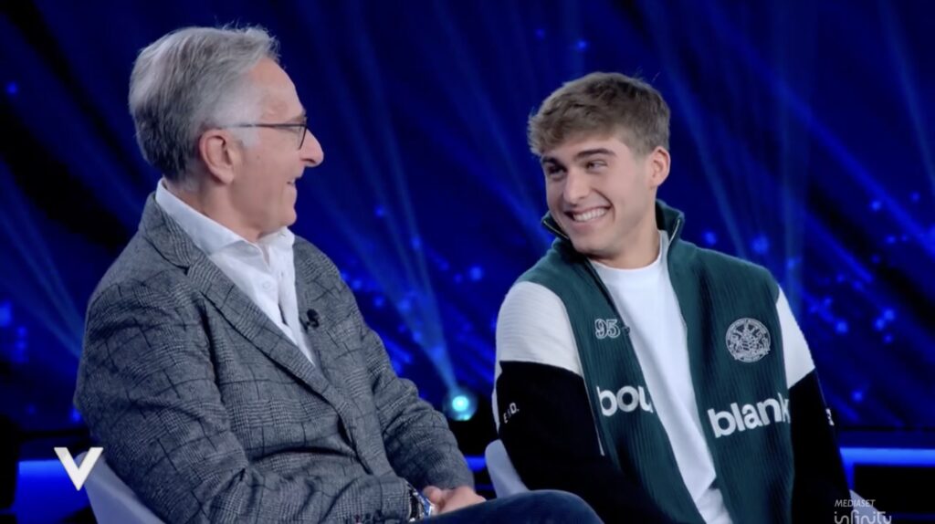 Il presentatore aggiunge: “Ovvio lui ha preso anche dalla mamma, la mamma è bella. Lui ha preso un po’ dal papà, un po’ dalla mamma, il viso è buona parte dalla mamma”. Poi scherza: “Questa fisicità straordinaria (Davide ha un corpo molto in forma, ndr) evidentemente ha un’altra provenienza genetica”.