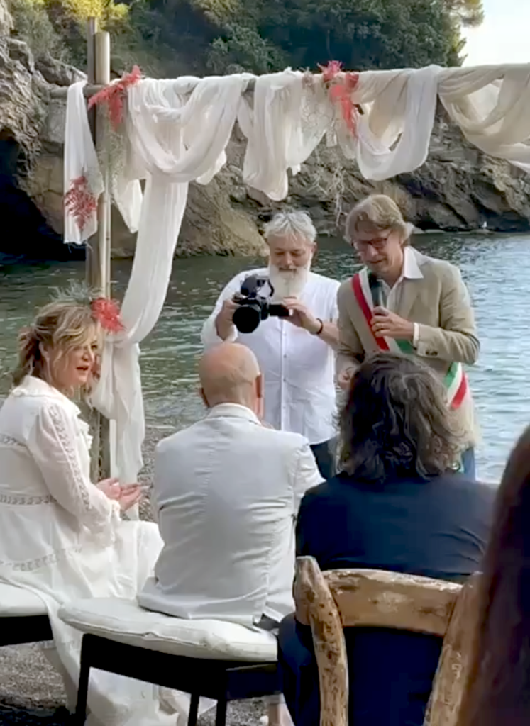 A officiare l’unione della 49enne e del 66enne è stato il collega giornalista di lui Nicola Porro. Tra i testimoni, come si vede da alcune immagini condivise online, anche il controverso giornalista radiofonico Giuseppe Cruciani.