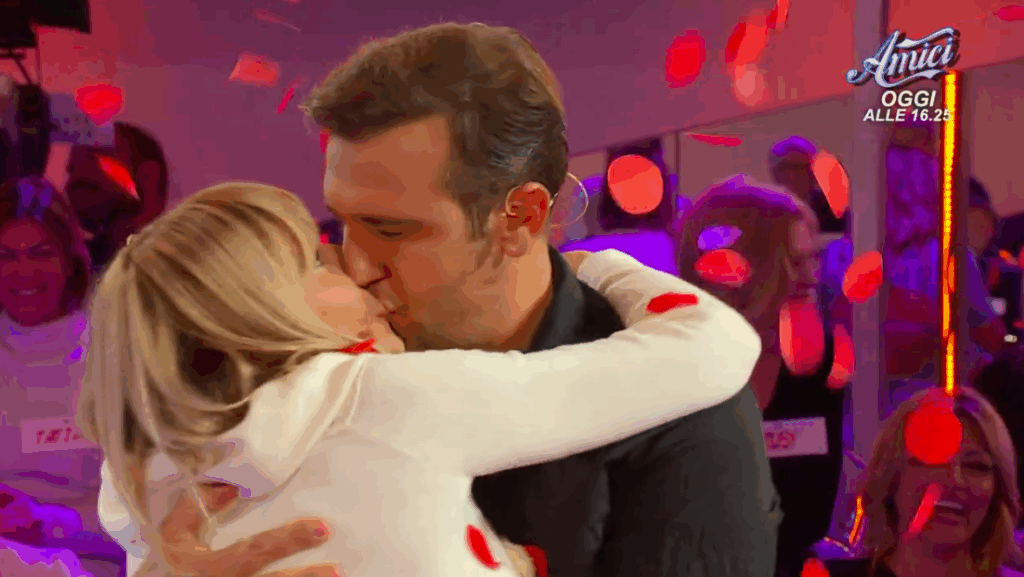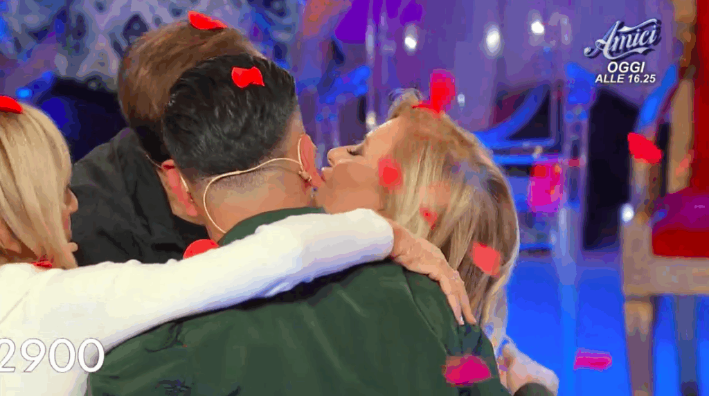Pio e Amedeo si siedono davanti a Gemma e la riempiono di complimenti, spiegando di essere venuti solo per lei. Chiedono di danzare al centro un lento con la Galgani, un vero portafortuna. Maria ride. “Io voglio pure i petali di rose”, sottolinea sarcastico Grieco. La De Filippi li accontenta.