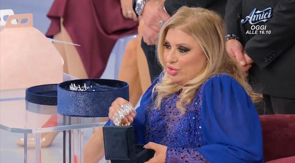 Tina chiede alle sue guardie del corpo di valutarlo: sono brillanti veri. “Questo sì, me lo tengo. Certo!”, sottolinea. Alla fine decide di tenere pure l'uomo, ma in stand by. Gli altri due li congeda invece. Prima di riaccomodarsi nel suo posto da opinionista, rivolgendosi a Maria fa una raccomandazione: “Per favore, quando arrivano, verificate”. Si riferisce al patrimonio. “Cosimo è l’unico che ha parlato di proprietà, gli altri sembravano due scappati di casa”, aggiunge tagliente. La conduttrice gli fa notare però che è molto più giovane di lei: “Va beh, giovane, sì, ma diciamo che non è proprio un giovane aitante, quindi…”. E’ velenosissima e lapidaria nel raggiungere il suo scopo., Ed è tutta da ridere, perché il pubblico da casa si diverte e la elegge ancora una volta ‘regina’.