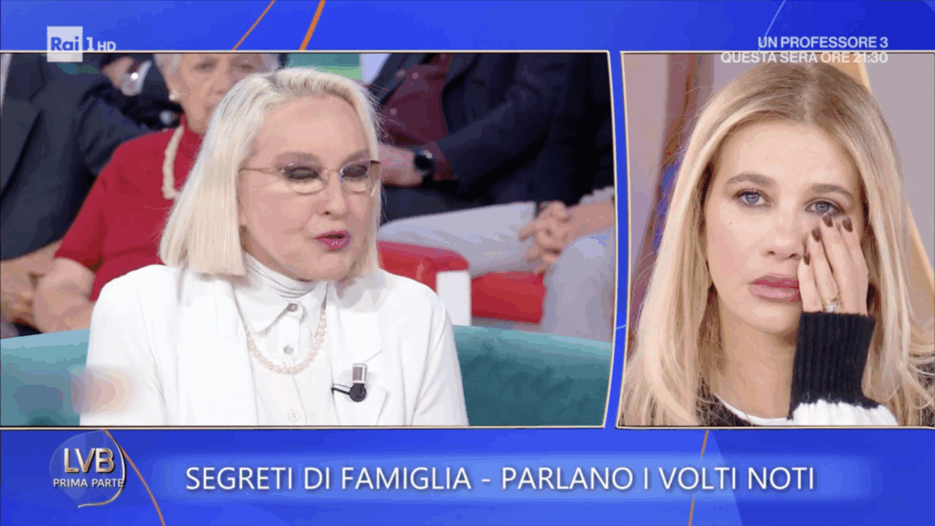 La siciliana osserva le immagini che scorso sul video in studio in cui è con l’attrice deceduta, sconfitta dal cancro al pancreas, a 71 anni. Si trattiene, ma le viene da piangere. “Sarà un Natale diverso, il primo senza mia suocera”, dice a Caterina Balivo.
