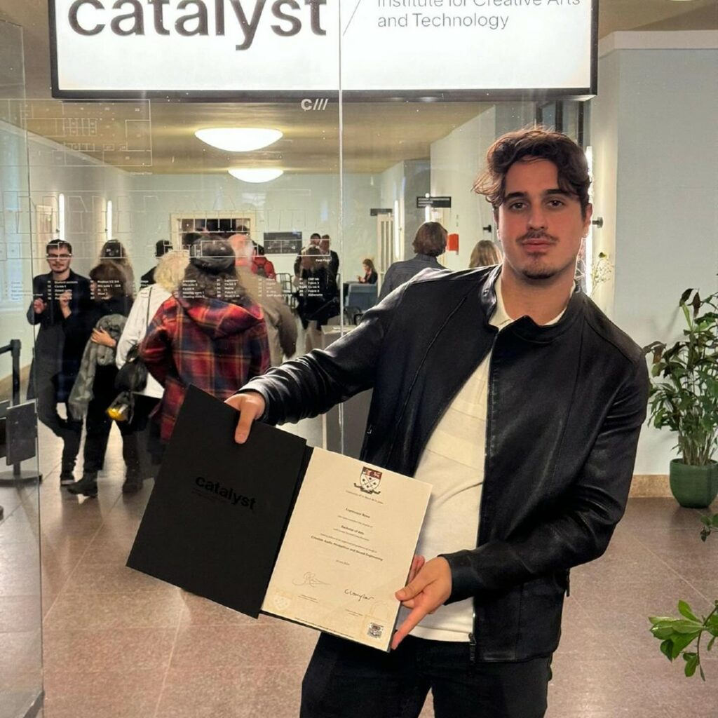 - Il 23enne ha conseguito il titolo al Catalyst - Institute for creative Arts and Technology