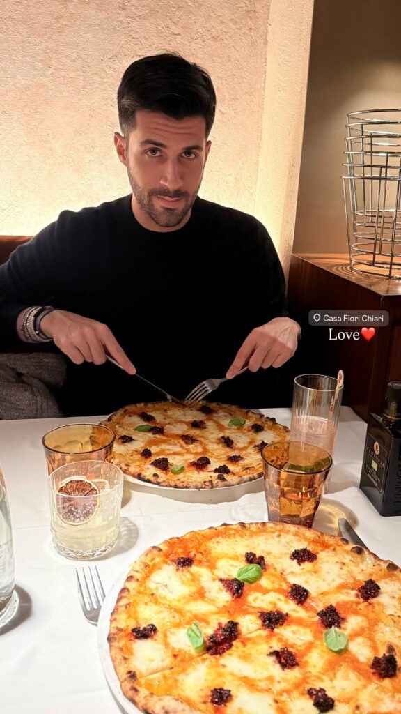 Nel carosello tanti scatti in cui appare con Giulio, spesso al ristorante (lui ha infatti commentato scherzando: “Un anno a tavola”). E anche nelle Stories sembra di scorgere i due a cena insieme in un ristorante di Milano. “Diavola gialla nel posto preferito (stiamo ancora festeggiando)”, scrive la mora salernitana.