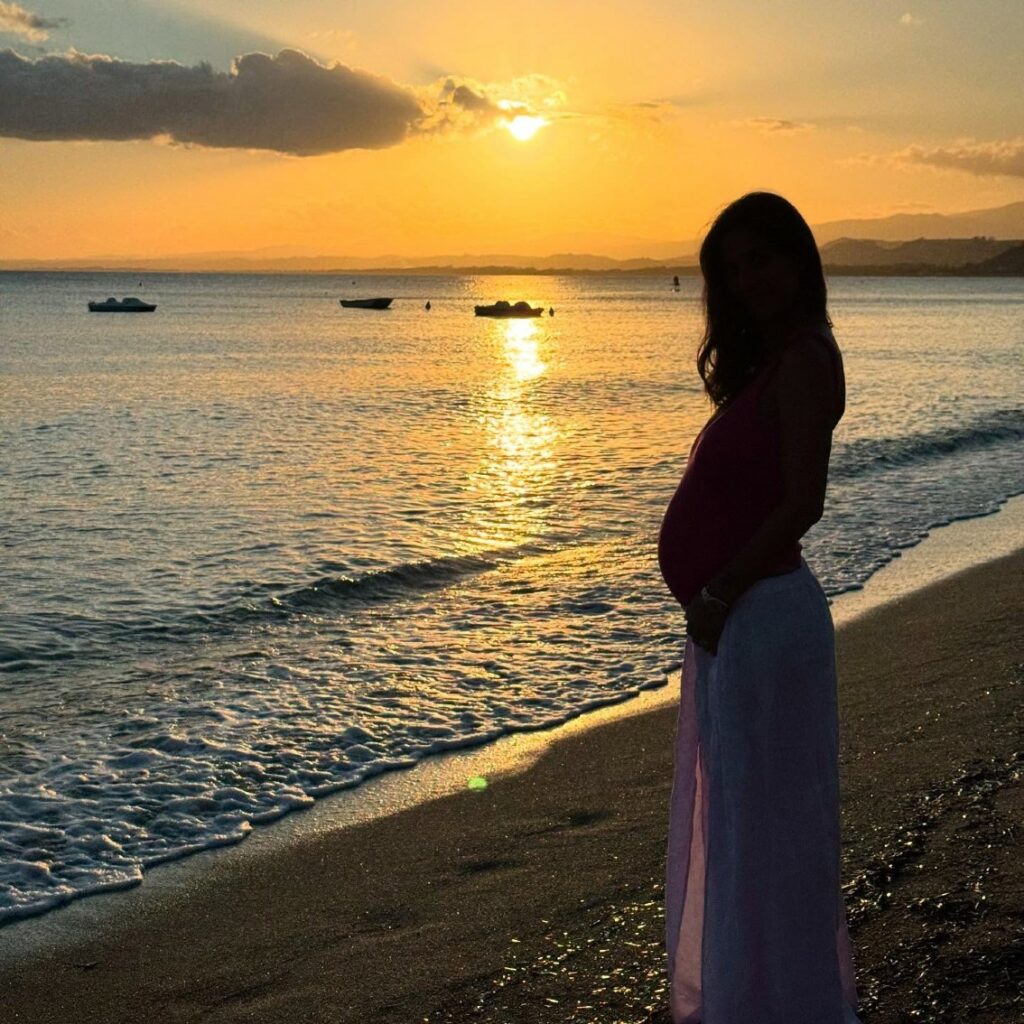 “Questa è la felicità. Quasi 8 mesi di te… Gianmaria, la mamma e papà ti amano, piccolo nostro”, scrive, rivolgendosi a Enea, che porta in grembo. Roberta Morise si gode gli ultimi giorni d'estate col pancione nella sua Calabria. Con lei c’è anche il marito, chef pluristellato, Enrico Bartolini, e il primogenito della coppia, nato il 24 maggio 2024. La conduttrice 39enne posta alcune immagini in costume al settimo mese.