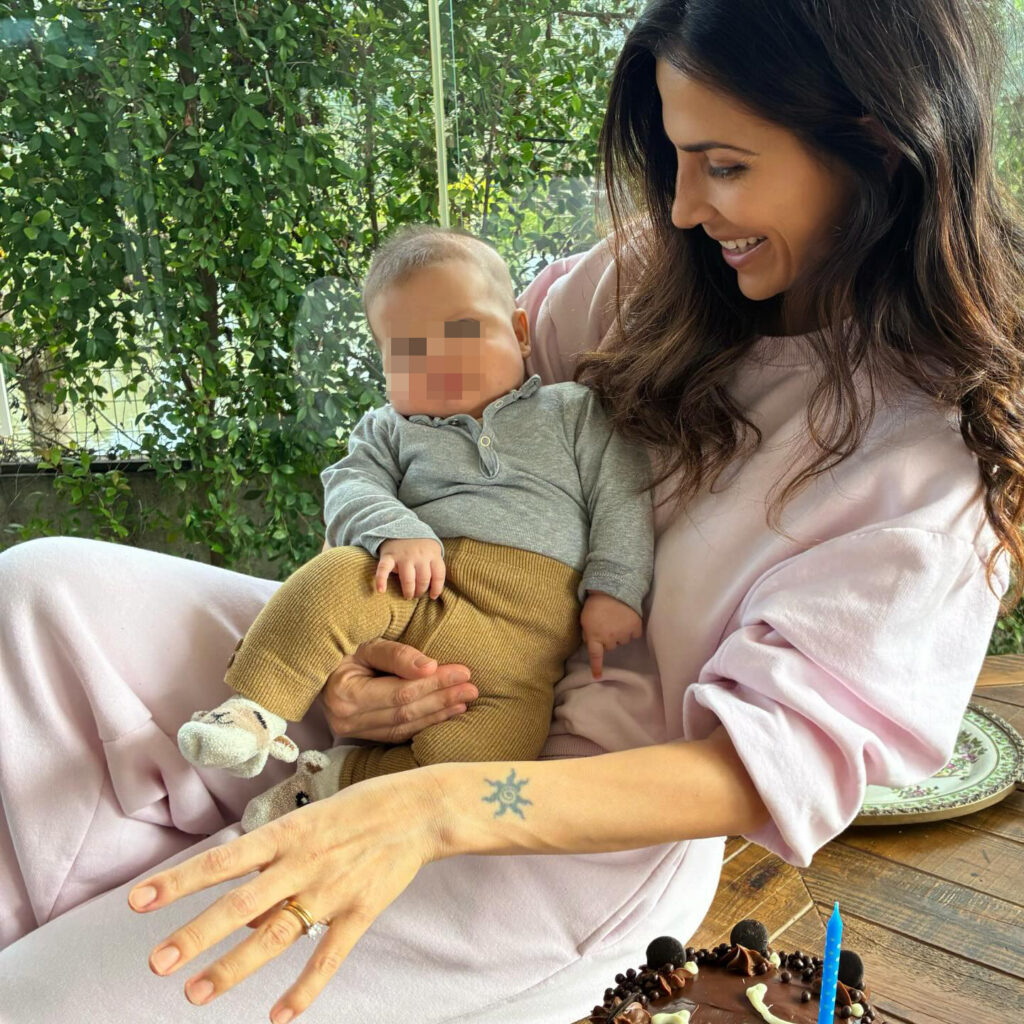 Tra le braccia ha Geremia, accanto il dolce al cioccolato con sopra scritto “3” e una candelina simbolica. Sorride guardando il suo “angioletto”. Appare davvero appagata e felice.