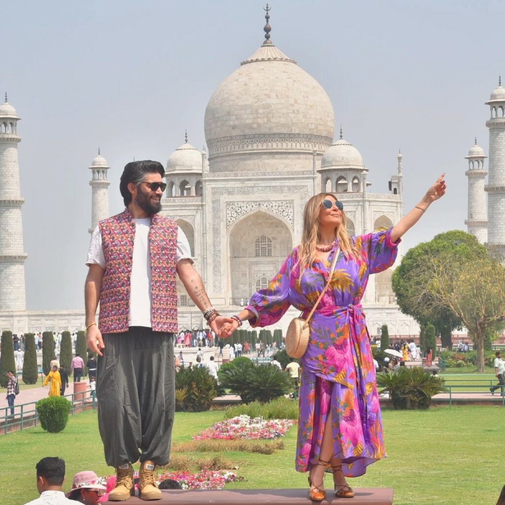 In una delle foto pubblicate, la giornalista è ritratta davanti al Taj Mahal mentre, sorridendo, indica il cielo e stringe la mano del compagno. “La posa me l’ha suggerita l’indiano, non ho alcuna responsabilità”, ha scritto con ironia nella didascalia.