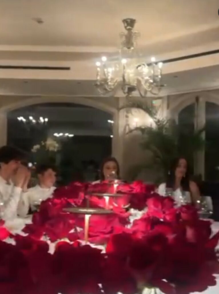 E ancora. C’erano anche il fratello di Terzi, Pietro Enrico Maria, e i figli che Giovanni ha avuto dalle due sue ex mogli, Paola e Silvia: Ludovico e Giulio Antonio. Tutti felicemente insieme: una grande e allegra famiglia allargata. Ogni ospite ha indossato un curioso bavaglino con su scritto: “Oggi sono goloso”. Tavola ovale immensa con tovaglia e piatti bianchi, abbellita con fiori rossi al centro e tanta armonia. La Ventura va avanti col sorriso e sottolinea la sua ormai storia frase: “Crederci sempre e arrendersi mai”.
