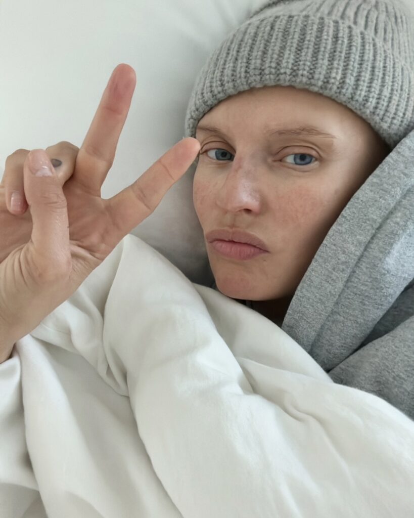 Nella serata - ora italiana - di venerdì 10 gennaio pubblica sul social un selfie in cui appare a letto con un cappello in testa, un po’ imbronciata, mentre con le dita fa il gesto della vittoria.