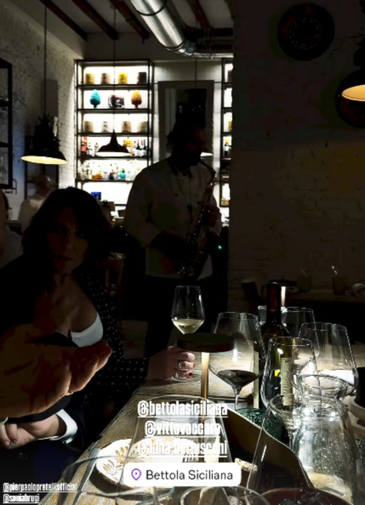 - La produttrice 51enne e il danzatore 41enne si siedono con gli amici da Bettola Siciliana
