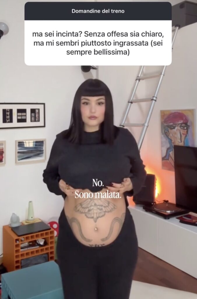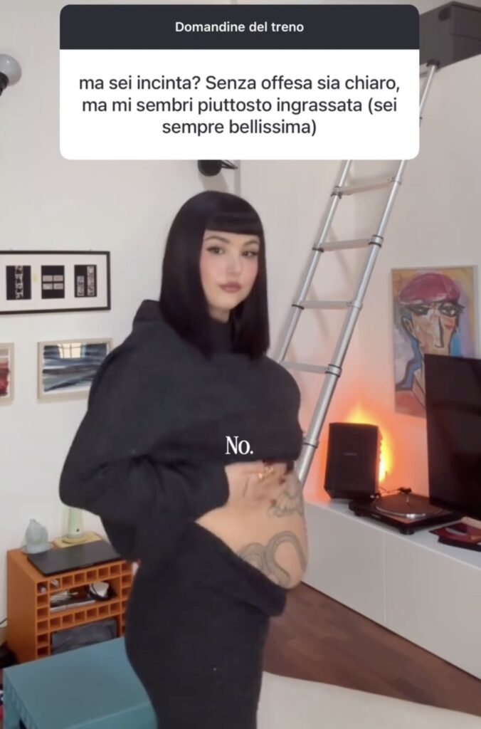 La 30enne, influencer, modella e scrittrice, nota al mondo della tv per aver partecipato a programmi come “Pechino Express” e al mondo della cronaca rosa per una lunga relazione con il cantante Damiano David, ex frontman dei Maneskin, ha voluto rispondere a un utente che via Instagram le aveva domandato se fosse incinta dopo aver notato un gonfiore del suo ventre.