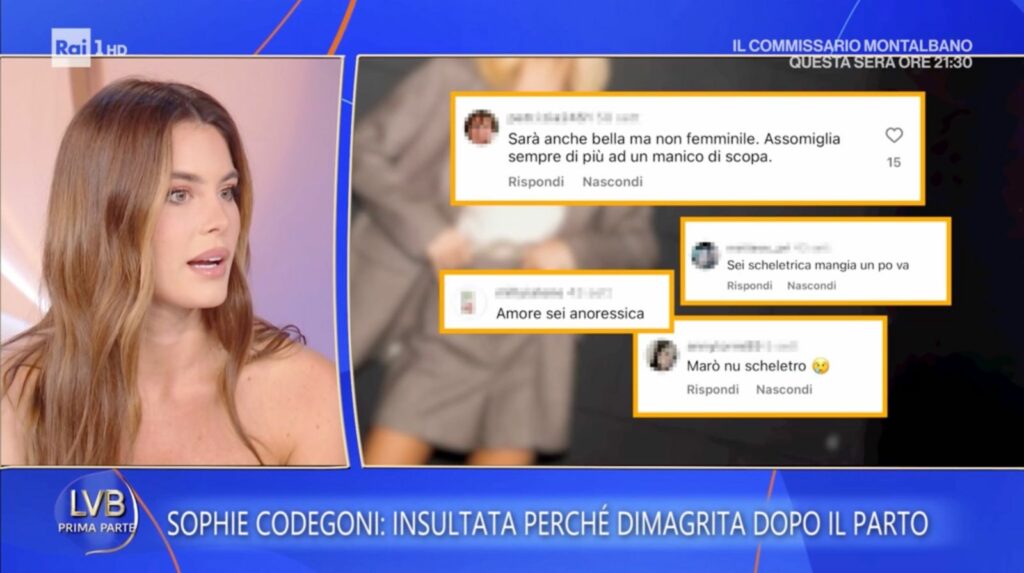 Sophie Codegoni pur di non farsi attaccare sui social da chi le dava dell’'anoressica' cambiava le sue foto ‘al contrario’. In tv, a La Volta Buona, svela: Ritoccavo le foto per farmi i fianchi più tondi. Ha reagito così agli attacchi social sul peso. Dopo la nascita della figlia avuta dall’ex Alex Basciano, Cèline Blue, il 12 maggio 2023, pur mangiando, dimagriva. Da lì gli insulti e le critiche. Vittima di bodyshaming, ha cercato di rendere la sua immagine più morbida e rotonda sul web.