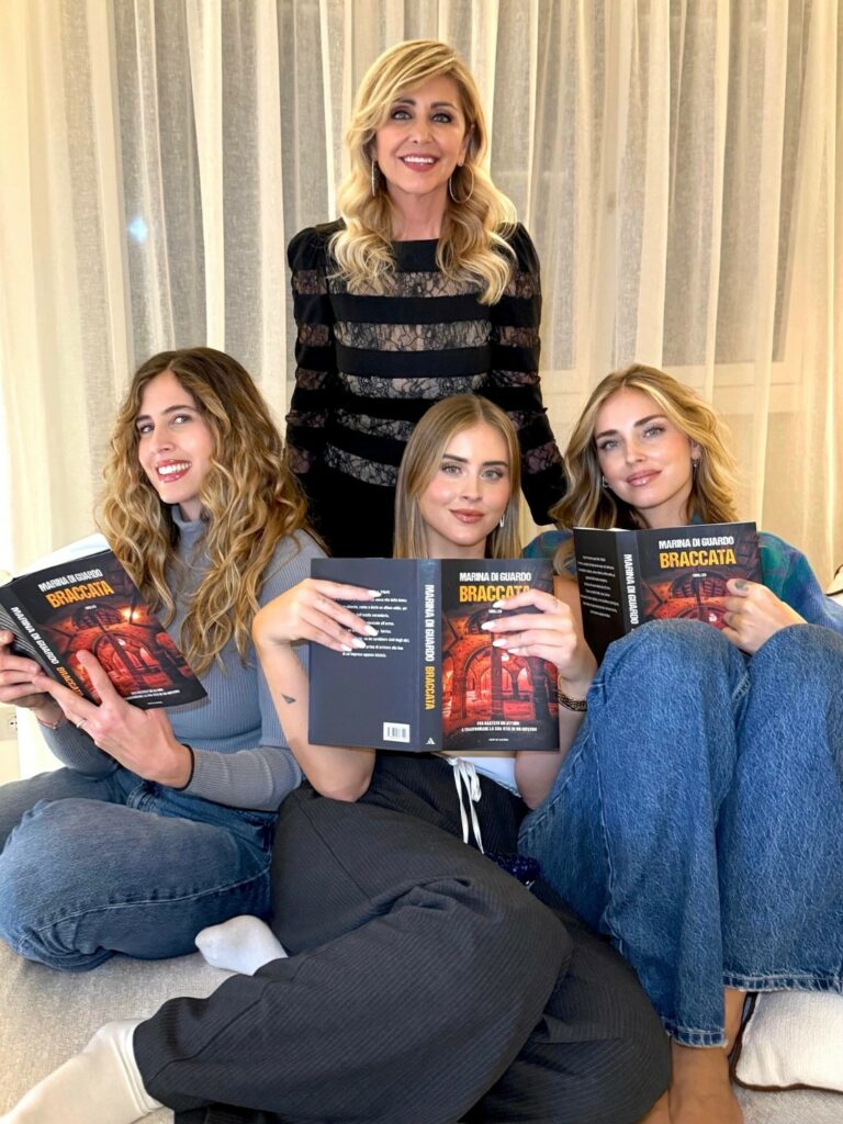 Le sorelle Ferragni promuovono gli affari di famiglia. Si riuniscono e fanno il tifo per mamma Marina Di Guardo che alla Rizzoli di Milano presenta il suo nuovo romanzo. Esce dal 25 novembre con “Braccata”, edito da Mondadori. Chiara, Francesca e Valentina non possono mancare alla prima della scrittrice 64enne, che posa insieme alle adorate figlie: le tre si stringono attorno a lei che tiene il suo volume tra le mani.