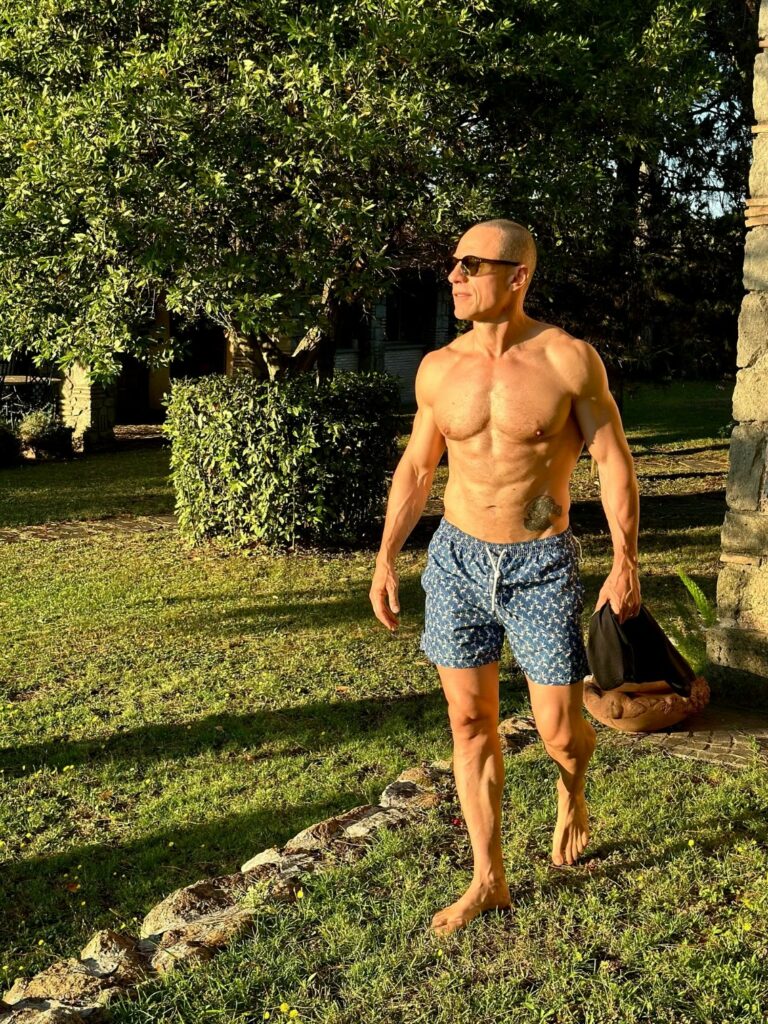 “Ho preso gusto nell’allenarmi. Negli ultimi anni il ‘devo’ è diventato un ‘voglio’”, aveva detto al mensile. L’attività fisica fa ormai parte della routine quotidiana. Gli serve anche a trovare un equilibrio mentale e abbattere lo stress. Si allena regolarmente con il personal trainer Antonio Saccinto.