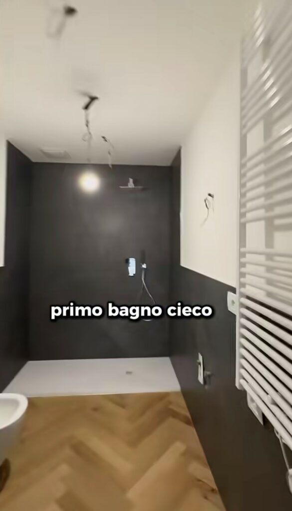 Corti parla del piano superiore: “Poi da questo lato nei prossimi giorni sarà installata una bella scala in acciaio che ci porterà al secondo piano dove abbiamo una seconda camera da letto, un secondo bagno e una scala a chiocciola che ci porterà sul tetto di questo stabile privato di mia proprietà dove farò una terrazza incredibile”. E’ tutto in divenire e lui è entusiasta.