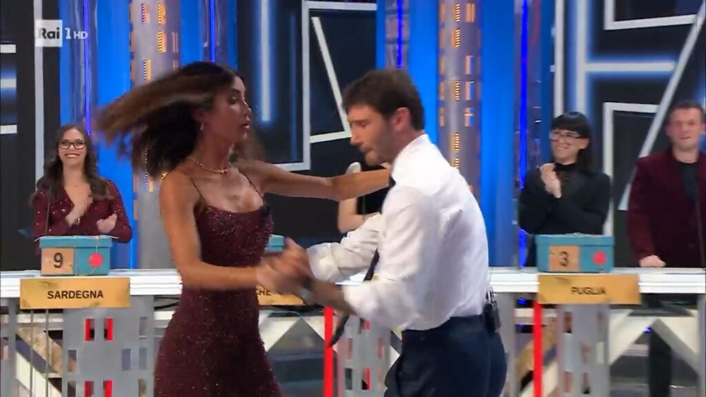 De Martino e Federica si cimentano in un ballo scatenato sulle note di Sesso e Samba, tormentone estivo di Tony Effe e Gaia: l’alchimia è perfetta. La showgirl è disinvolta, elegante nei movimenti, sensuale e scanzonata al tempo stesso. Il conduttore alla fine non può che applaudirla e invitare il pubblico in studio a fare altrettanto.