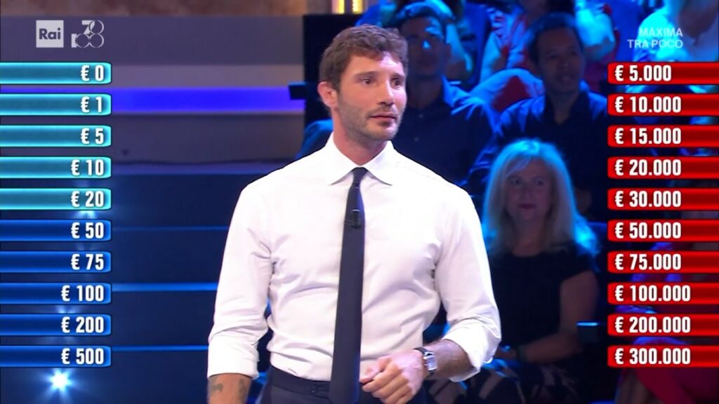 De Martino cita Il suo predecessore molto dopo, quando la concorrente, accompagnata dal compagno, arriva alla fine con due pacchi rossi. “Come direbbe anche il buon Amadeus: soldi sicuri", sottolinea quando in gioco sono rimasti solo i pacchi da 30mila e 100mila euro. Ma non basta.