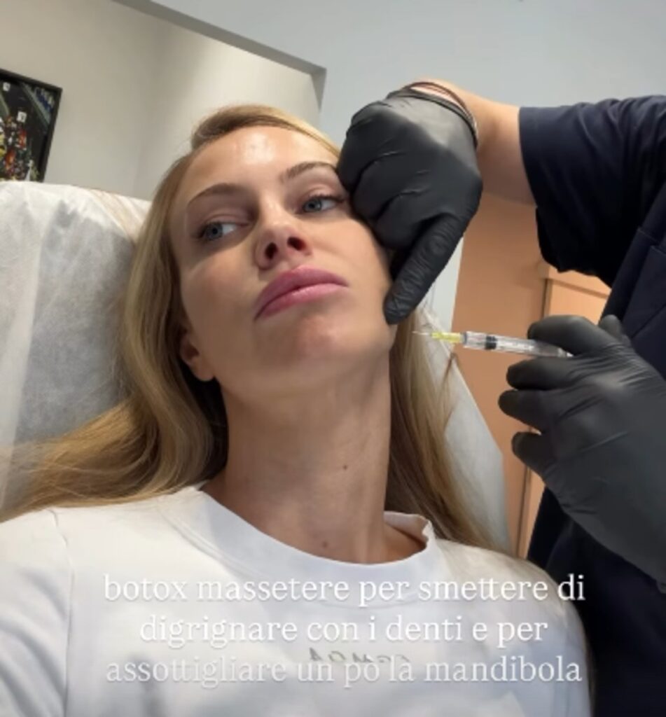 L’influencer 32enne soffre un po’ mentre il dottor Jacopo Gardellin le fa le punturine sul volto. Taylor scrive: “Botox massetere per smettere di digrignare con i denti e per assottigliare un po’ la mandibola”. Il medico la tratta con molta cura e le fa i complimenti: “Poi basta così, stai molto bene con la pelle”.