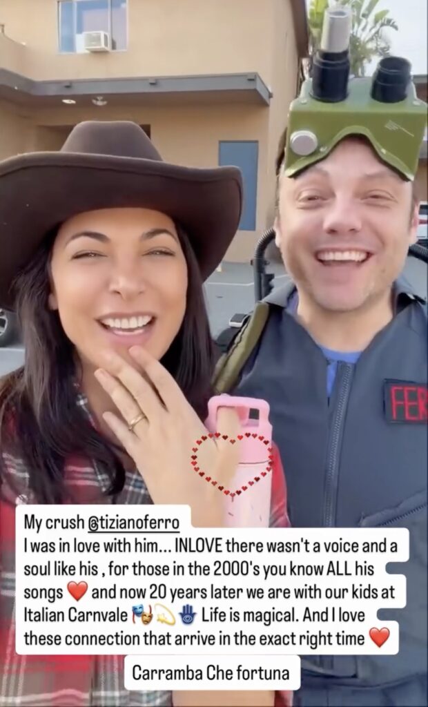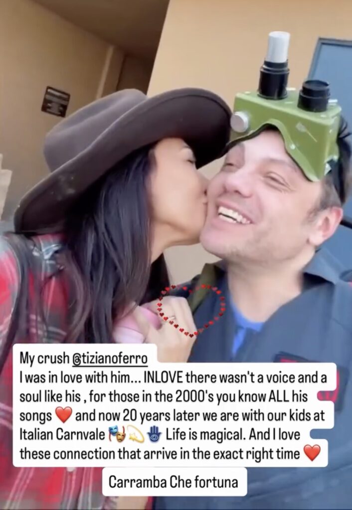 In un testo di accompagnamento la Atias spiega: “Ero innamorata di lui… INNAMORATA. Non c’era una voce e un’anima come la sua. Chi ha vissuto gli anni 2000 conosce TUTTE le sue canzoni”. Poi aggiunge: “E ora, 20 anni dopo, siamo qui con i nostri figli al Carnevale italiano. La vita è magica. E amo queste connessioni che arrivano esattamente al momento giusto”.