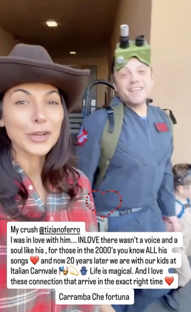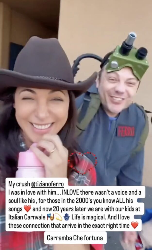In un testo di accompagnamento la Atias spiega: “Ero innamorata di lui… INNAMORATA. Non c’era una voce e un’anima come la sua. Chi ha vissuto gli anni 2000 conosce TUTTE le sue canzoni. Poi aggiunge: “E ora, 20 anni dopo, siamo qui con i nostri figli al Carnevale italiano. La vita è magica. E amo queste connessioni che arrivano esattamente al momento giusto”.