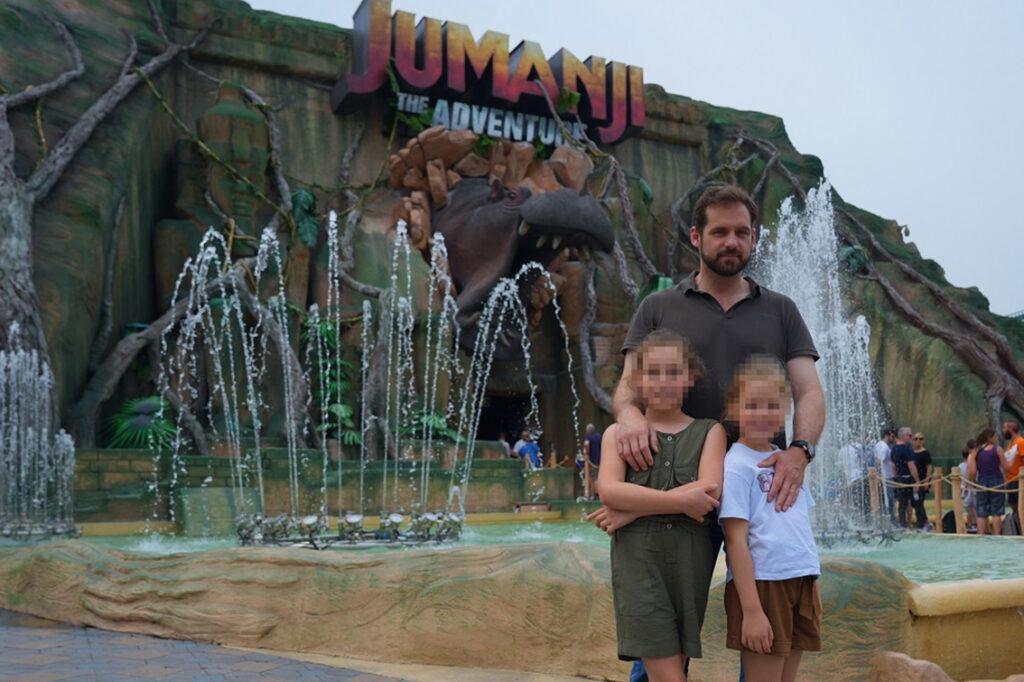 Non c'è sosta, si va anche sui giochi acquatici come la scenografica Fuga da Atlantide e la Colorado Boat. Tomaso, Sole e Celeste sorridono felici e si lasciano immortalare tranquillamente. Infine si concedono anche un brivido sull’ultima attrazione inaugurata, Jumanji The Adventure, prima ed unica al mondo ispirata alla popolare serie cinematografica di Sony Pictures Entertainment.