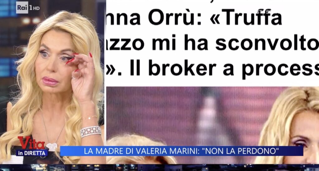 Valeria Marini con gli occhi gonfi di lacrime ha fatto una sorta di appello in tv a sua madre Gianna Orrù, ospite di Alberto Matano a “La Vita in Diretta”.