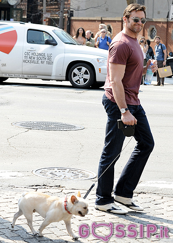 Hugh Jackman ieri ha portato a spasso il suo bulldog francese, Dali, per le strade di New York,…