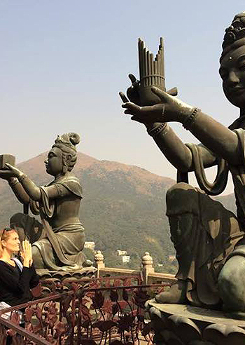 A mani giunte davanti alle statue dei Budda. Claudia Zanella posta su Facebook una foto dalla sua…