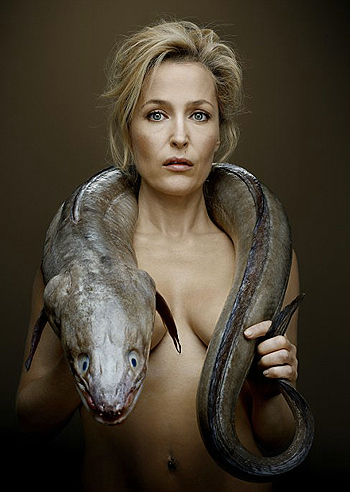 Nuda con un grongo sulle spalle. Gillian Anderson, la star di “X Files”, ha posato senza veli per…