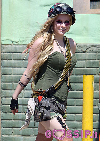 Avril Lavigne soldatessa sexy sul set