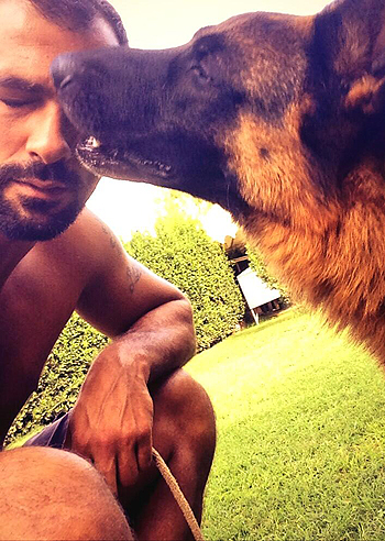 Lo stringe forte tra le braccia. Francesco Arca tiene in braccio un batuffolino bianco, un cucciolo…