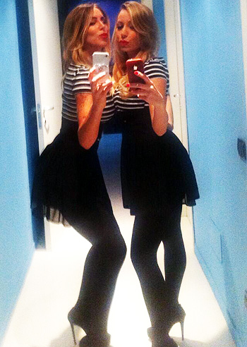 Capelli mossi, rossetto rouge. Gioca a fare la vamp Karina Cascella e il suo primo piano finisce…